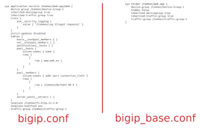 Aujourd’hui, j’aimerais vous raconter brièvement comment j’ai migré les paramètres d’un dispositif F5 à un autre sans modifier la configuration des équipements en production. Bien que ajouter le nouvel F5 au cluster soit la meilleure option pour la synchronisation de la configuration, ce n’était pas possible parce que le client ne voulait pas modifier les paramètres du dispositif en production alors qu’on doit copier peu à peu la configuration d’un dispositif à l’autre.